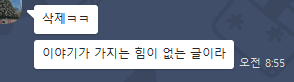 첫 글을 썼다가, "이야기가 가지는 힘이 없다"라면서 지웠다.