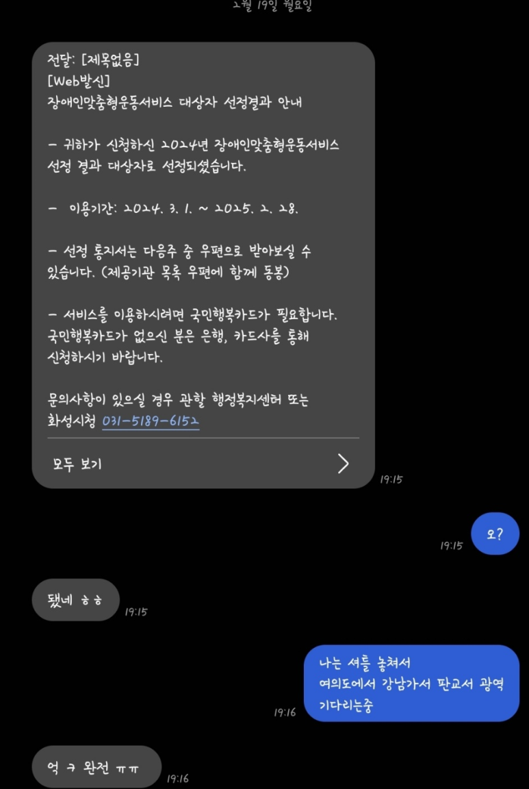 (그때 아내에게 문자가 왔고 저 상황이었다)