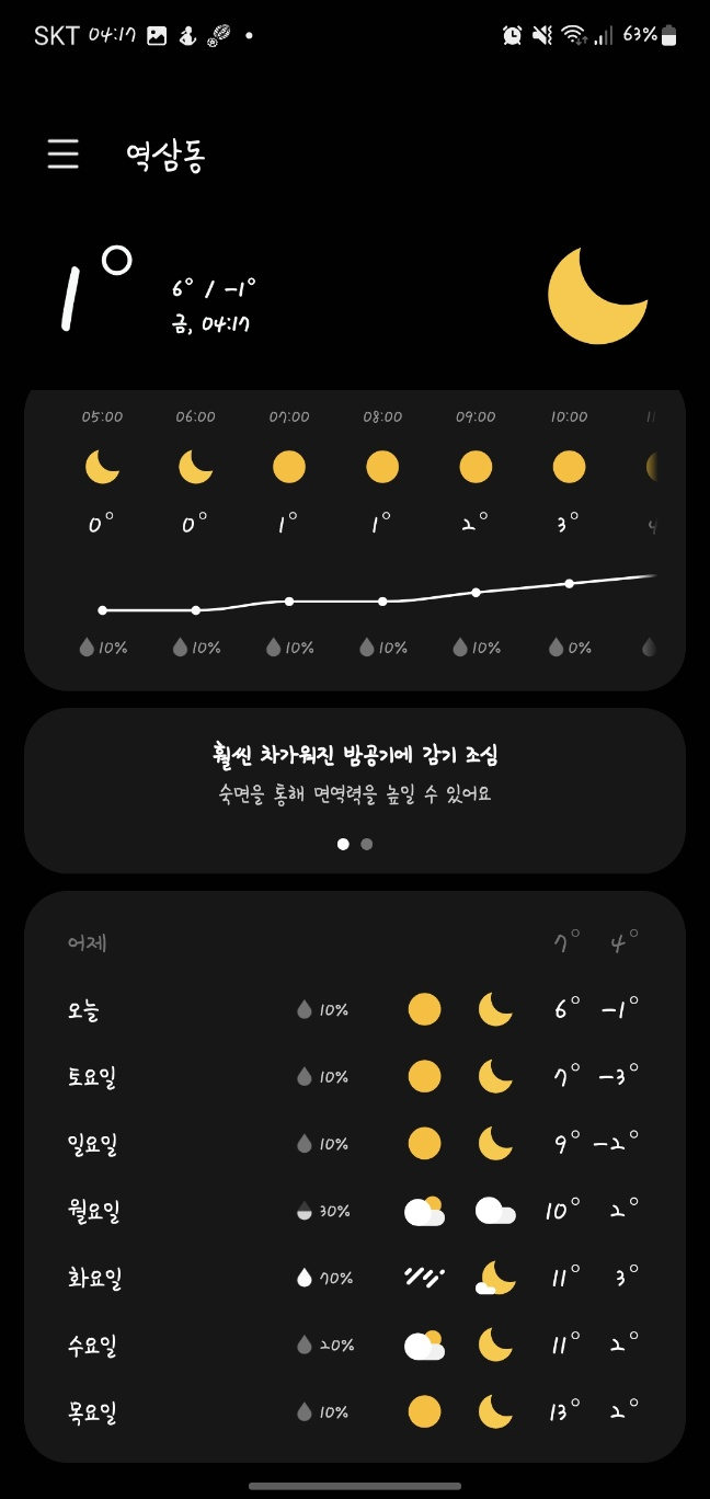 오늘 기온이 좀 떨어졌네요. 감기 조심하십셔.