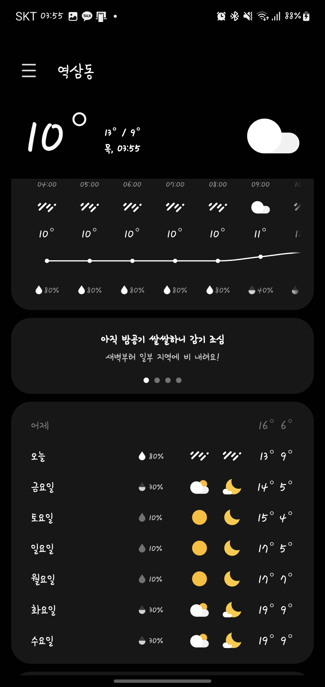 우산 챙겨서 출근하십시다.