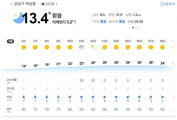 좋은 아침입니다. 오늘은 뭐 강수확률이 거의 0프로네요.