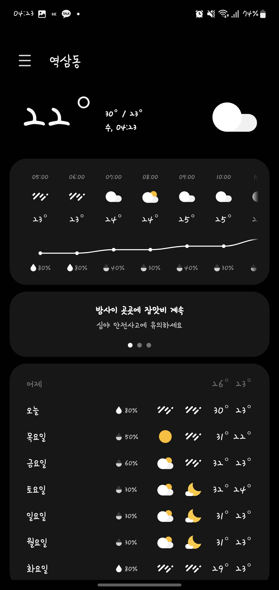 오늘은 비가 오는데도 기온이 30도 가네요.