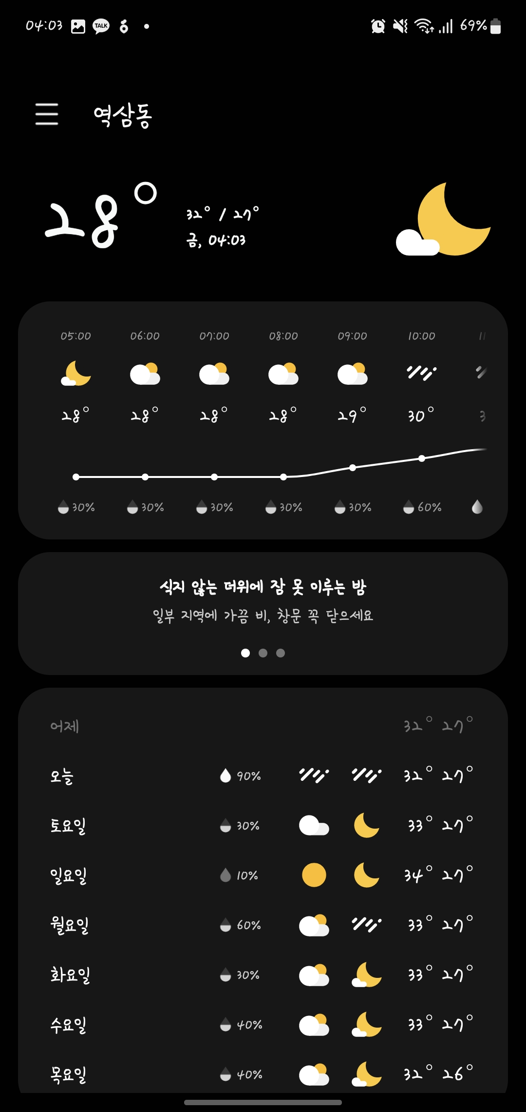 불쾌지수 올라갈것 같은 날씨니 감정관리 잘 해보십시다요.