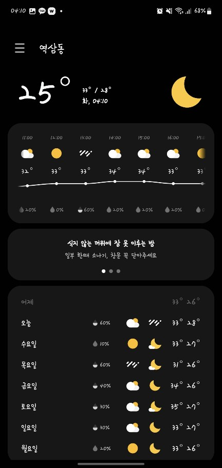 어제 내린 소나기가 더위를 좀 가져갔으면 좋겠네요.