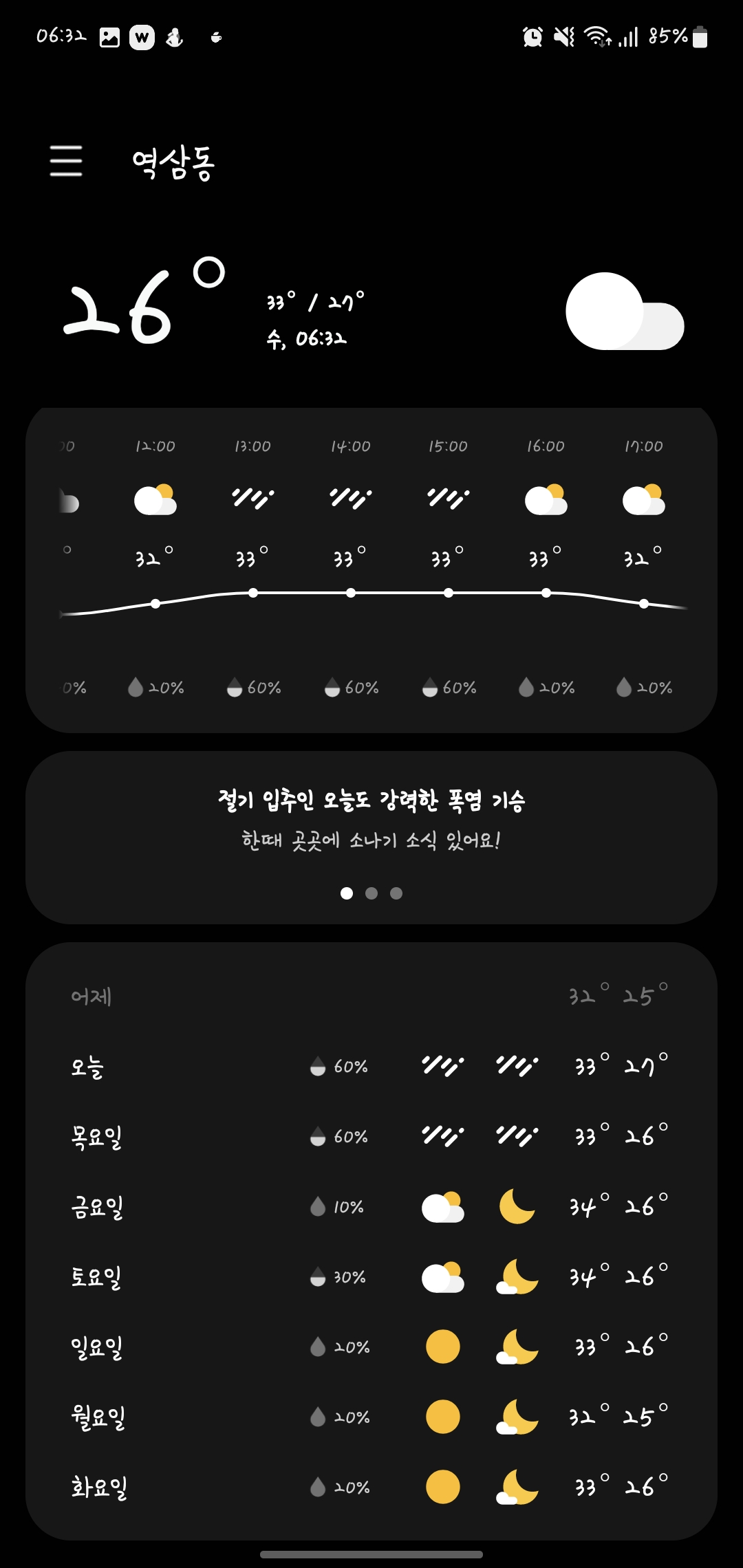 오늘이 입추라는데... 폭염경보와 소낙비가 함께 있을것 같네요 ㅎㅎ