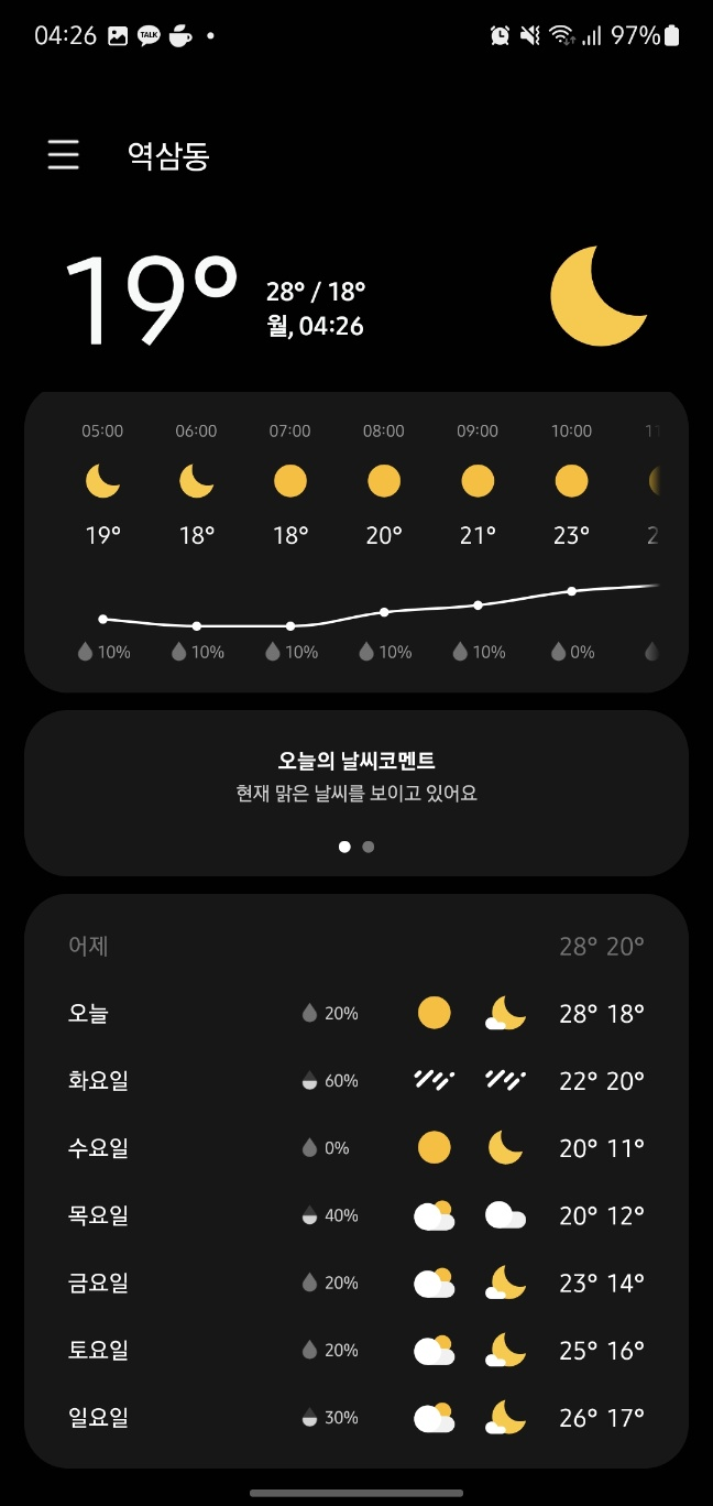 좋은 아침입니다. 이번주 날씨 보니 내일 비오고 추워지려나 봐요.