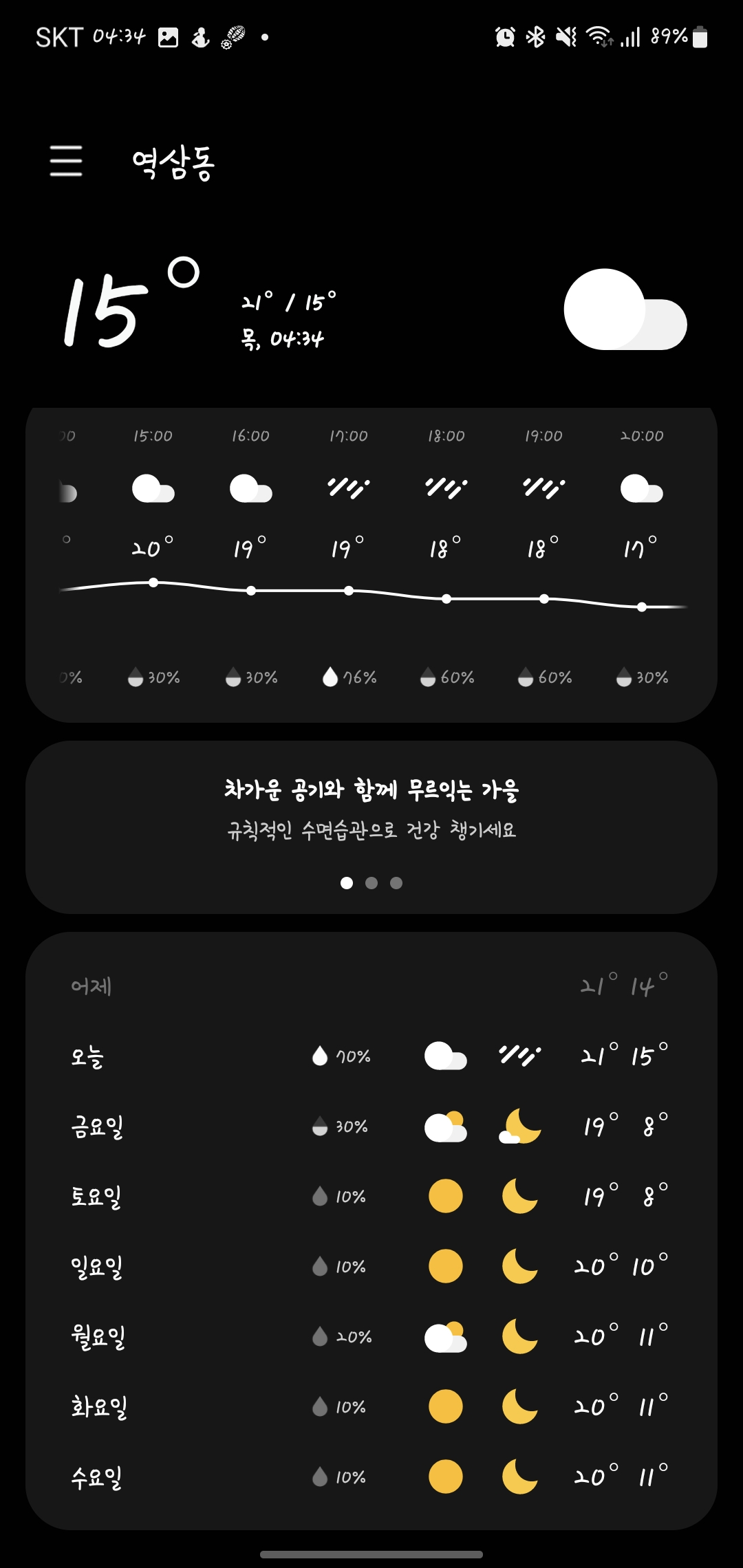 오늘도 퇴근 무렵에 비가 있네요. 우산 잘 챙기세요.