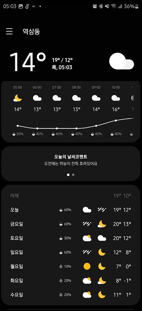 좋은 아침입니다. 오늘은 비가 예보되어있군요.