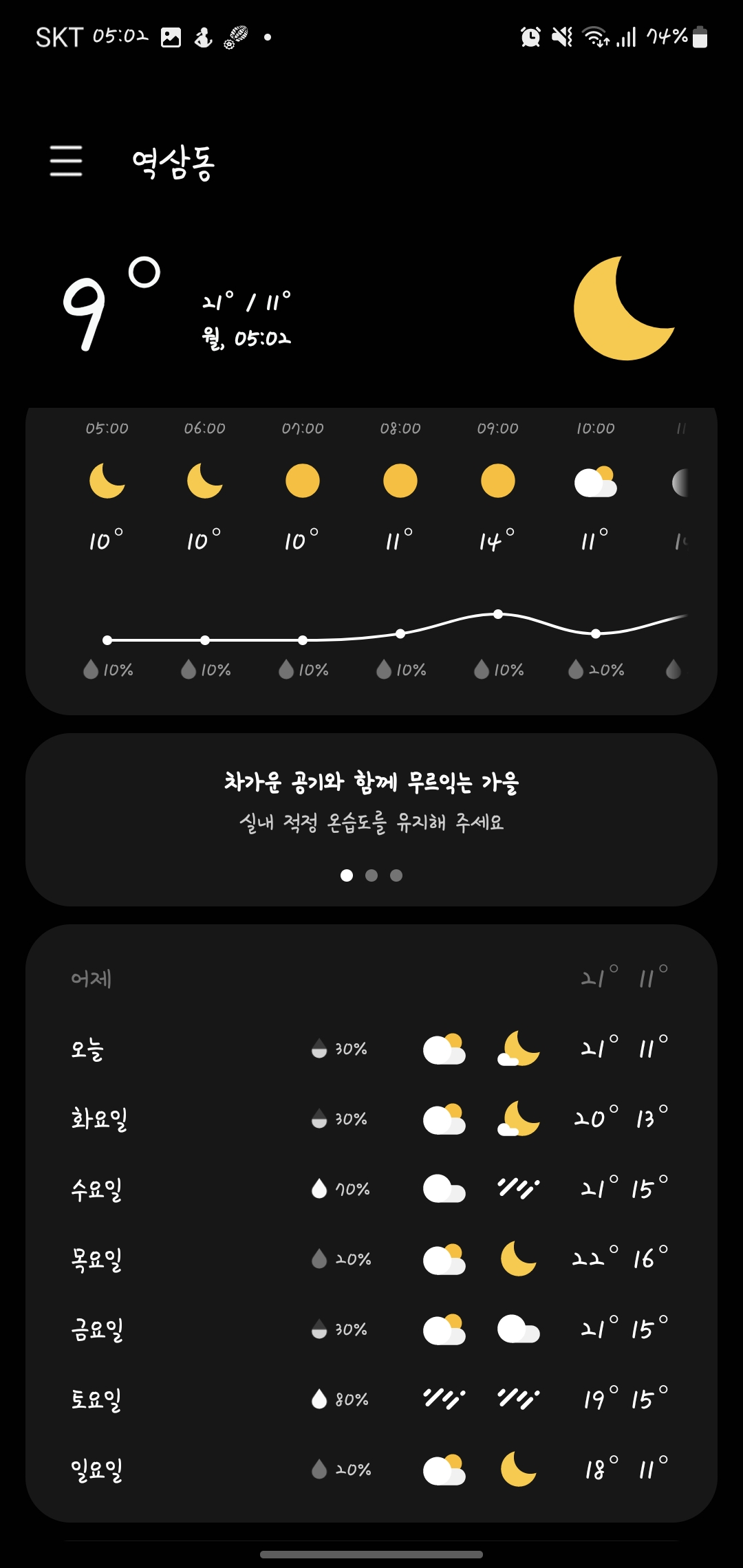 오늘도 가을 날씨답게 시원하고 청명할거 같습니다.