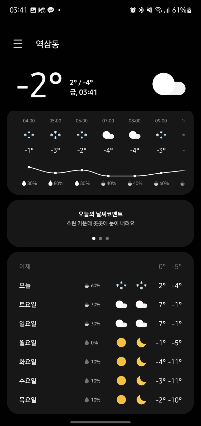 오늘 날씨를 보니, 기온은 꽤 올라왔는데 다시 눈이 오는거 같네요,