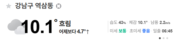 오늘은 아침기온도 10도가 넘어가네요.