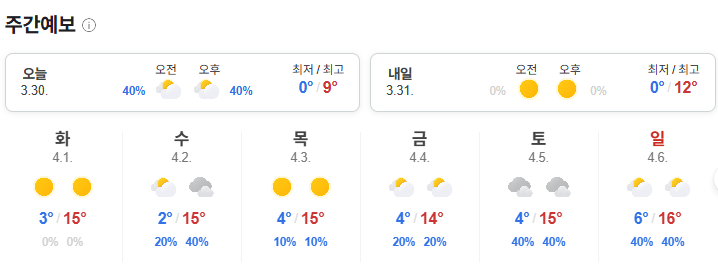 오늘은 우리 동네 날씨를 가져와 봤습니다.