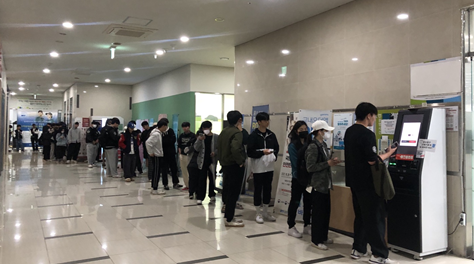 앞에 분이 가지 않고 고민을 합니다. 선택은 이미 한것 같은데 공지문도 보고, 식당의 안쪽도 보면서 앞으로 가질 않습니다.