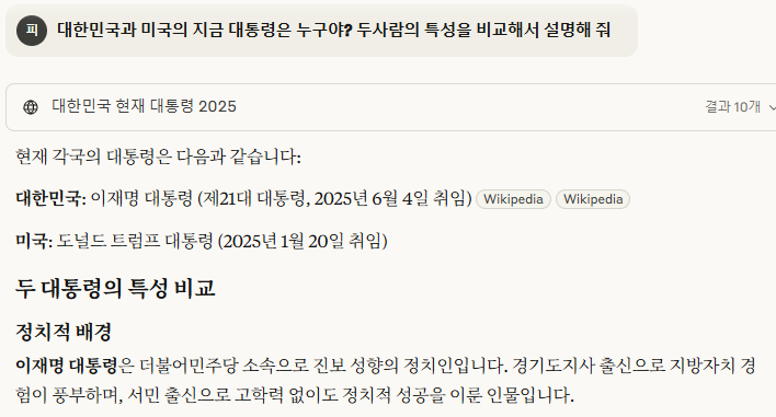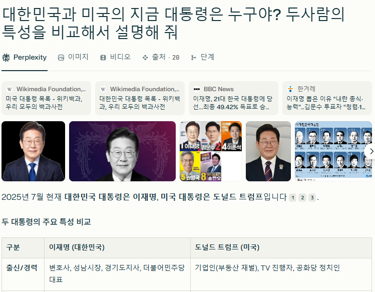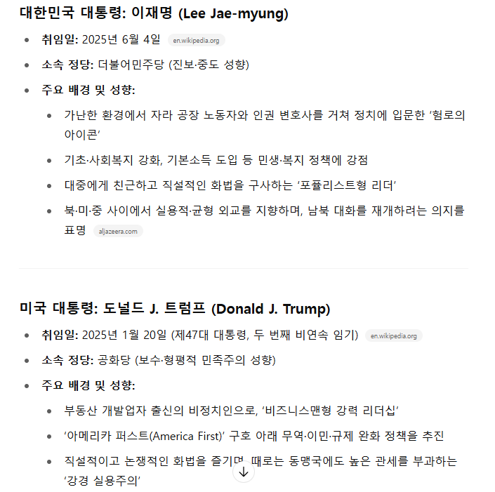 아래 보다 좀 더에는 "윤석열", "조바이든"이 나왔는데, GPT가 서칭을 하면서 답을 찾아가는 과정이 흥미롭네요.