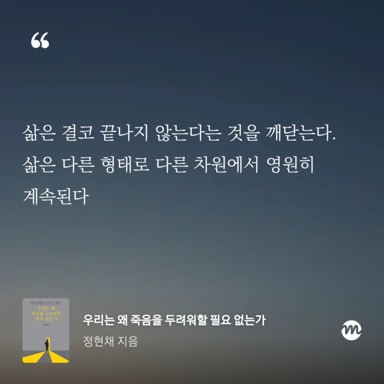 삶은 이세상에서가 끝이 아니다. 다른 형태로 다시 시작된다.