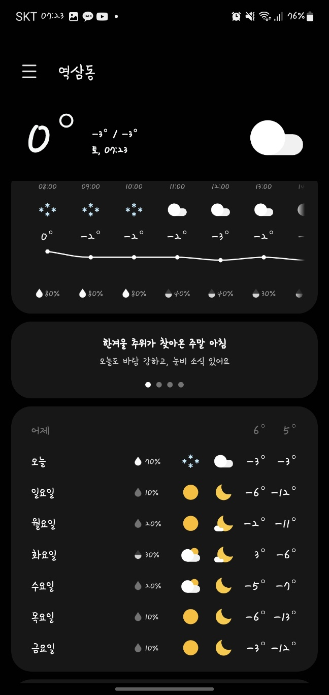 좋은 아침입니다. 날씨가 다시 추워졌네요.