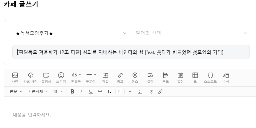 결국 어제 오후에 쓰려던 독서 모임 후기는 오늘 오후 다섯시에나 쓰게 됐고,