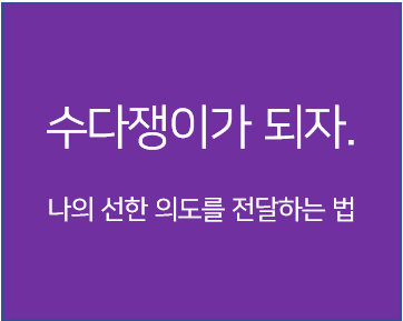- 나는 선한의도가 있는데, 다른 사람하고 공유해야 비로소 "선한"의도가 된다. 수다쟁이가 되자.