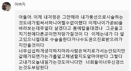 - 심장 스탠트를 10개 이상 박으셨고 (풍선확장술은 말할것도 없고)