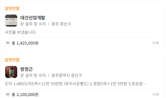 문 교체와 페인트 칠은 140만원이 넘는다.