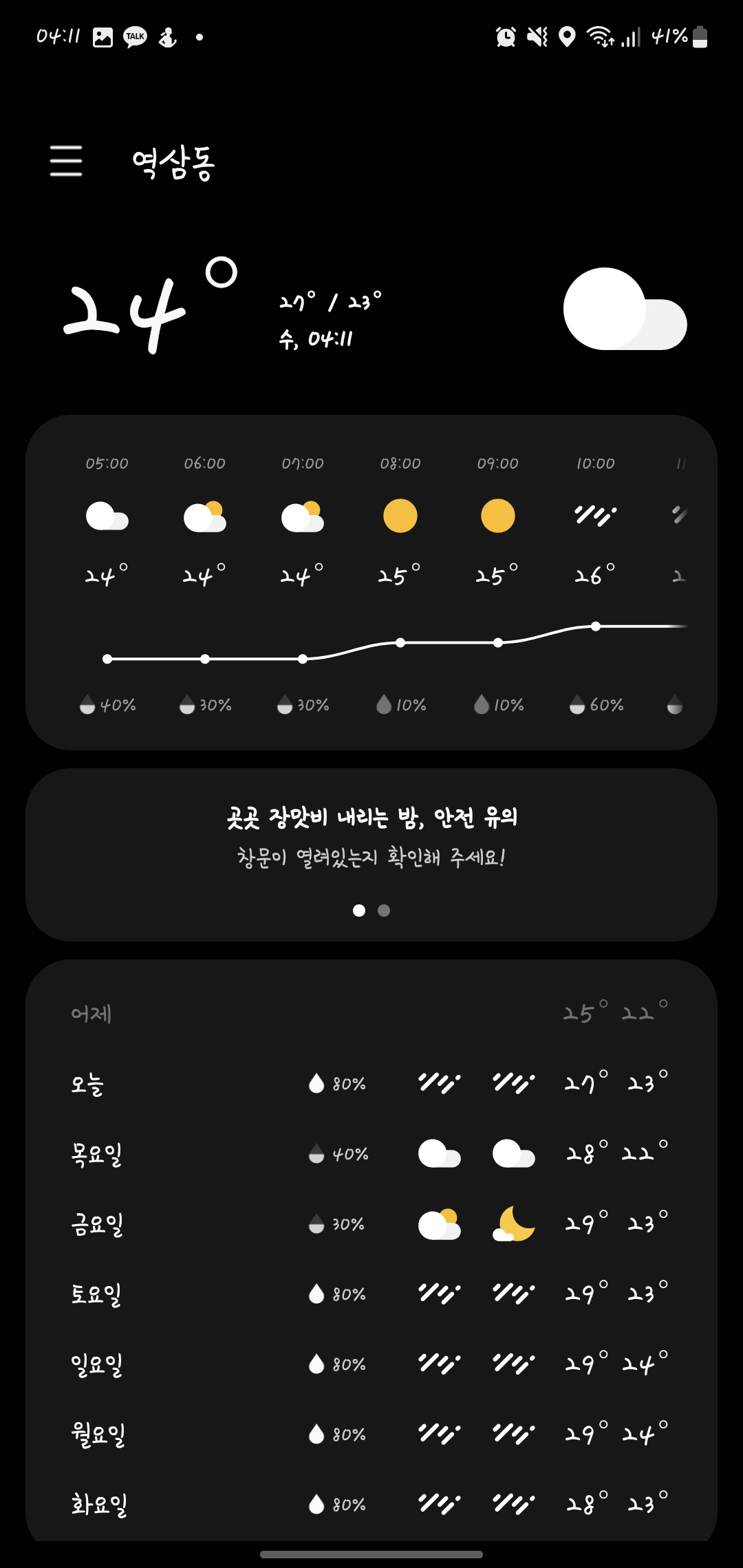 좋은 아침입니다. 장마라서 비가 많이 오기는 하지만 덥지 않음이 감사하기도 합니다.