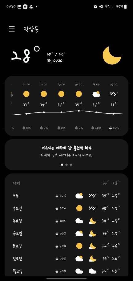 좋은 아침입니다!! 퇴근 무렵 비소식이 있으니 우산 좀 챙겨야겠습니다.