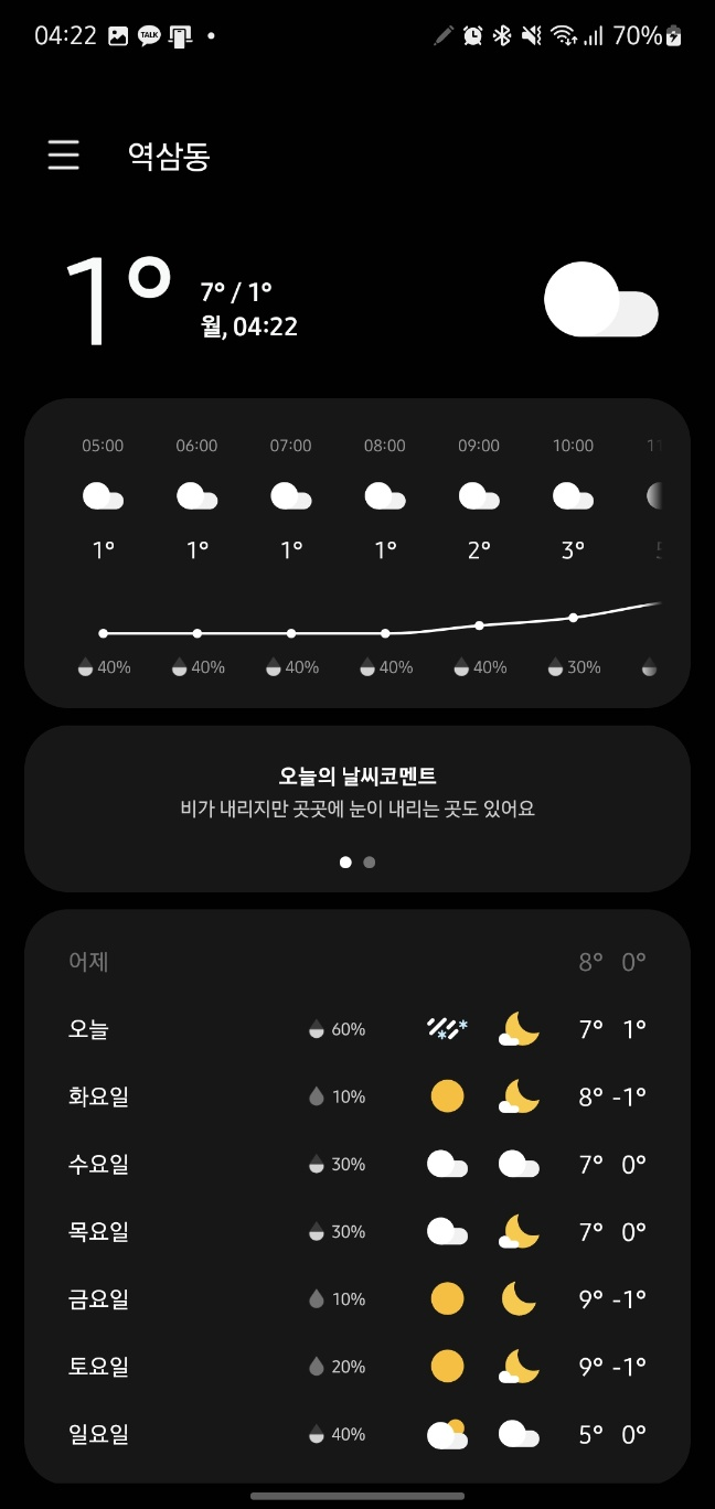 좋은 아침입니다. 간만에 아침 기온이 영하가 아닌 영상을 기록했네요.