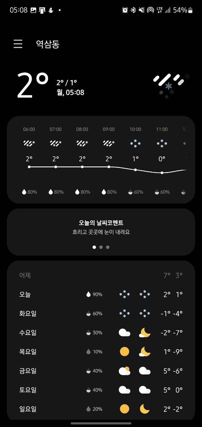 서울은 눈이 온다고 되어 있네요? ㅎㅎ
