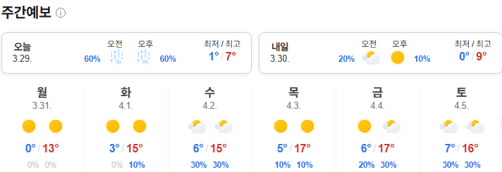 날씨를 보는 이유는 저도 봐야 하지만, (몇분 안계시는) 아침에 제 글을 보는 분들께 정보를 드리기 위함이고