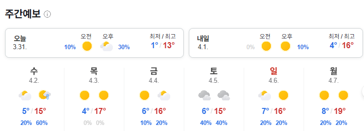 3월의 마지막날, 날씨만큼이나 기분좋은 하루가 되길 기대해 봅니다.