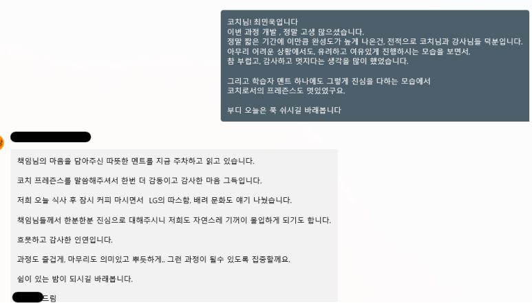 제 문자를 받으신 대표님과 강사님들께서 저보다더 길게 감사 문자를 주셨습니다.