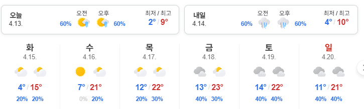 비가와서 한결 더 깨끗해진 세상[4월 13일 감사일기]