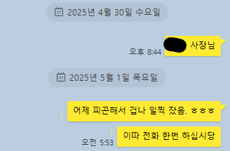 일을 하다가 늦게 봤는지, 10시경 연락이 왔네요.
