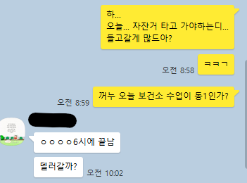 '델러 오실 수 있을랑가?' 라고 생각하며 아내에게 톡을 툭 했더니.