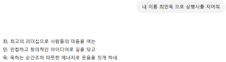 이렇게 One Shot을 적용한 프롬프트의 경우, 의도한 응답이 쉽게