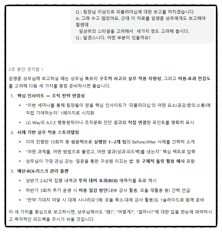 무엇보다, 오늘은 Q&A 기법과 멀티페르소나 기법은 유용하게 활용해 볼 수 있지 않을까? 생각됩니다.