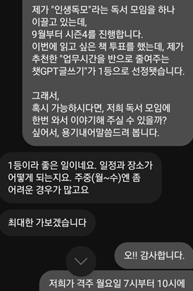 내 책을 독서모임으로 선정하기로 했다고 하면, 기분이 참 좋을 것 같더라.