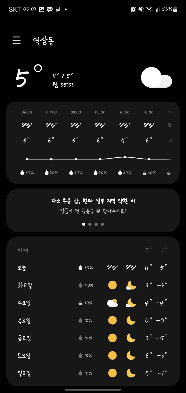 좋은 아침입니다. 아침에 비가오네유. 우산 챙깁시더.