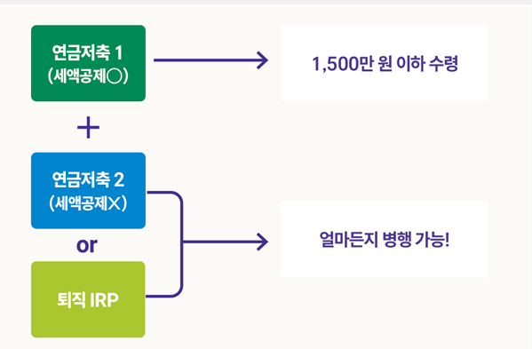 - 총한도 고려 : 세액공제계좌의 인출계획은 1500만원을 넘지 않도록.
