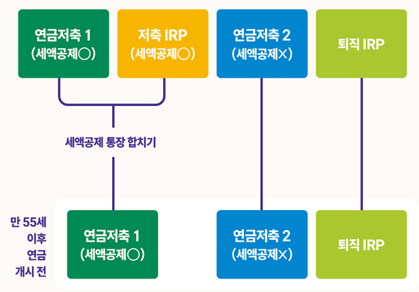 세액 공제 계좌 합치기 : 3.3%~5.5%의 세금을 적용받는 두개의 계좌는 하나로,