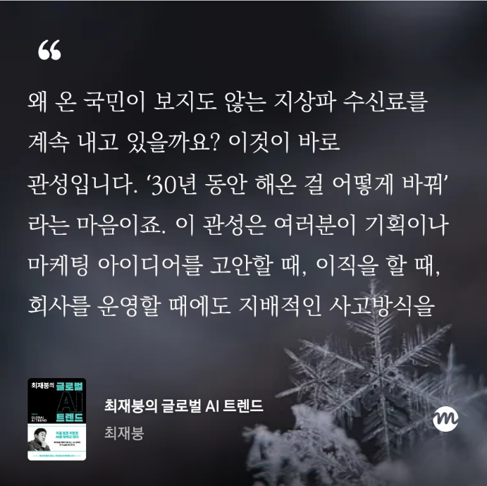 1216. 관성의 법칙. [책한조각 생각한스푼 (최재붕의 글로벌 AI 트렌드)]